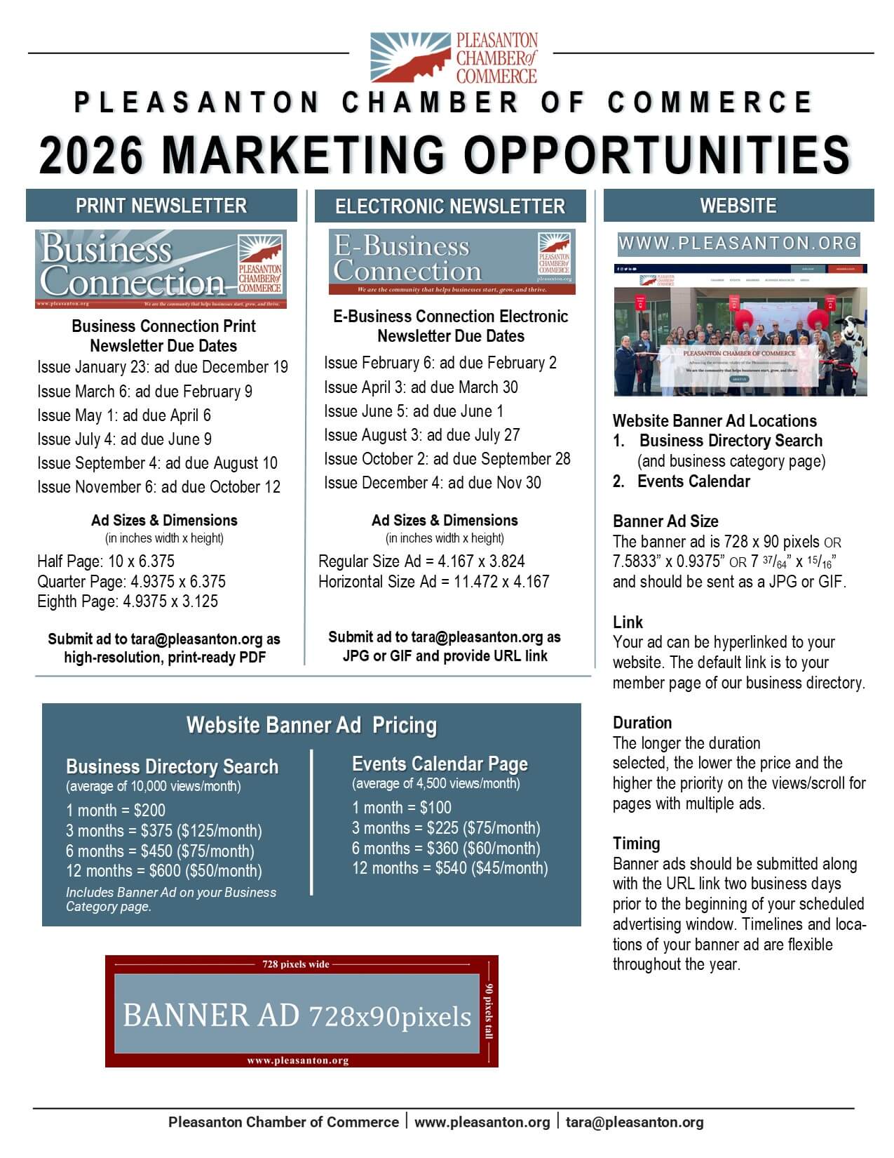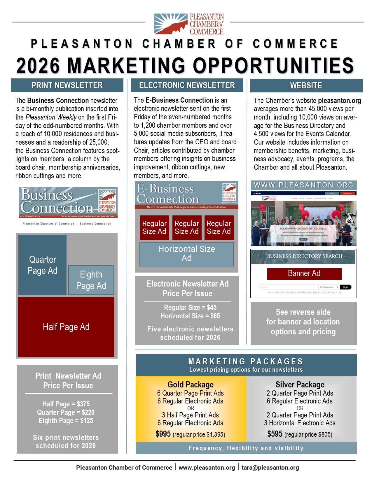 Jump start your outreach with a targeted campaign to a very active business community and vibrant community of readers. With options ranging from a one-time print ad to having a regular presence in all of our publications to a banner ad on our online directory, we invite you to give consumers the knowledge of what your business is known for. Tell your story, increase your exposure and promote your brand by partnering with the Pleasanton Chamber.